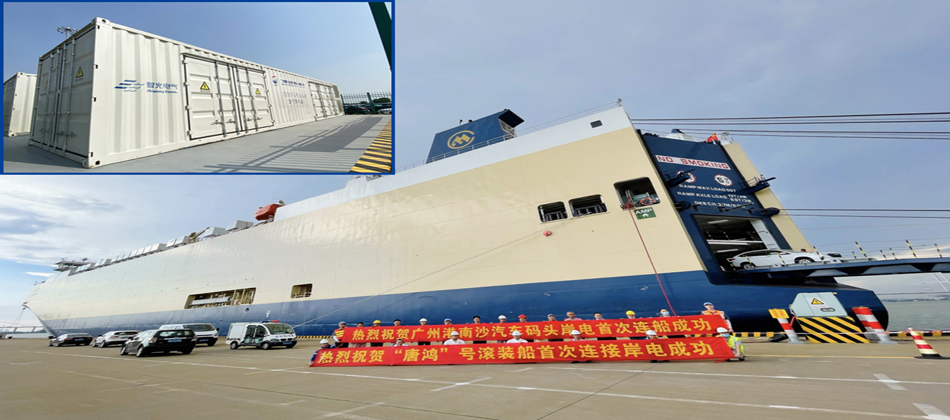 2021年,廣州港南沙汽車碼頭使用一套智能高壓岸電系統(tǒng),采用6.6kV級高壓船舶港口岸電系統(tǒng),可根據(jù)船舶電網(wǎng)參數(shù),調整供電頻率和供電電壓,設置系統(tǒng)輸出電壓和頻率,使岸基電源與船舶發(fā)電機實現(xiàn)無沖擊并網(wǎng)和負荷轉移。