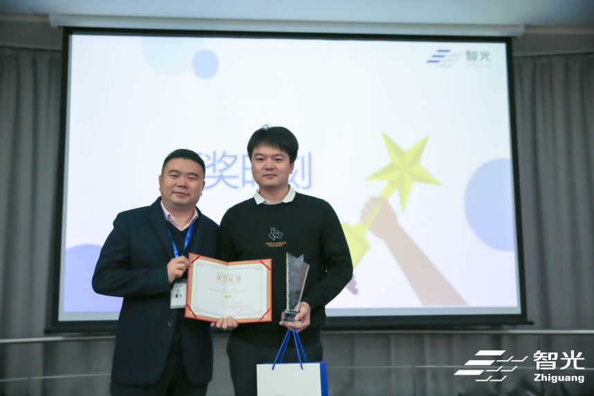 (圖為廣州智光電氣股份有限公司綜合管理中心總監(jiān)王一休為一等獎獲獎選手頒獎)
