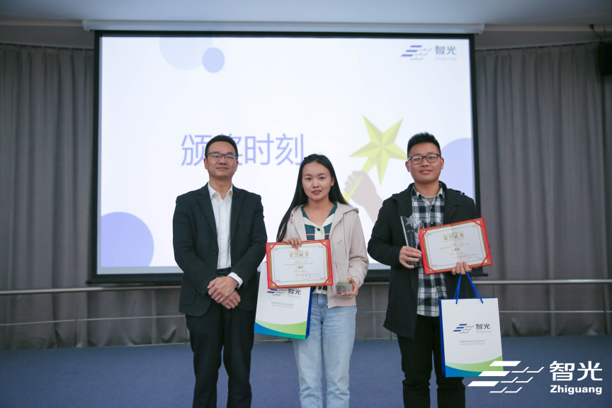 (圖為廣州智光電氣股份有限公司投資部部長肖瑩瑩為優(yōu)秀獎獲獎選手頒獎)